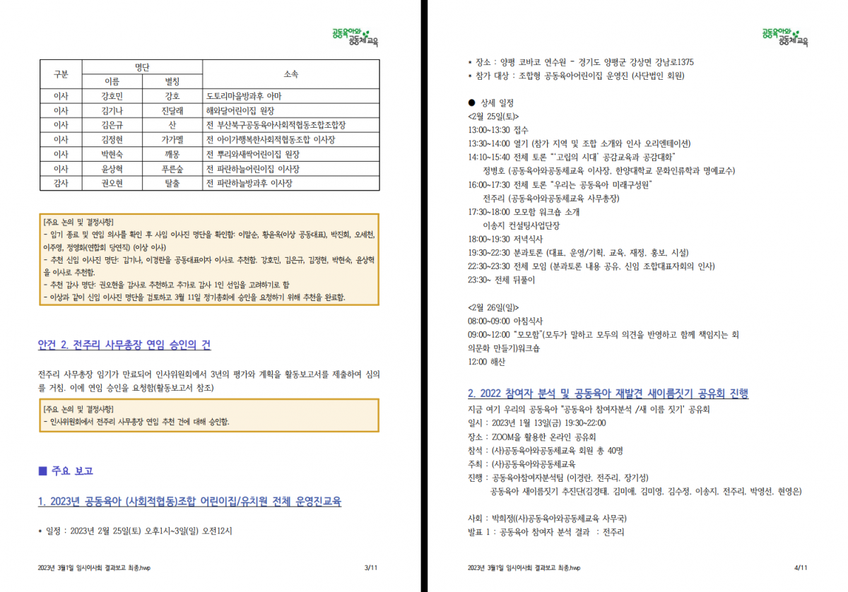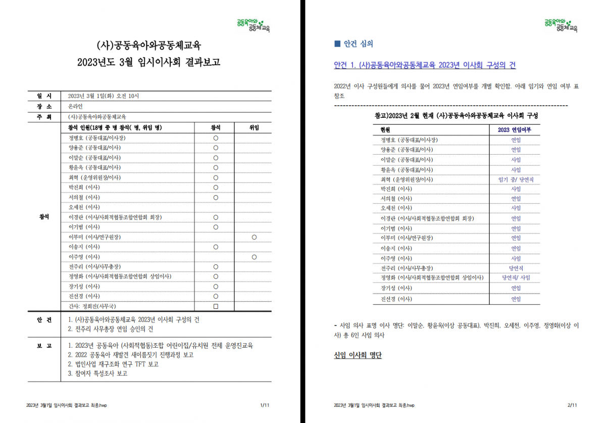 (사)공동육아와공동체교육 2023년 3월 임시 이사회 결과 보고 드립니다. 페이지 정보 작성자 운영자 작성일23-03-08 09:58 조회931회 본문 댓글목록 등록된 댓글이 없습니다. 이전글 다음글 목록