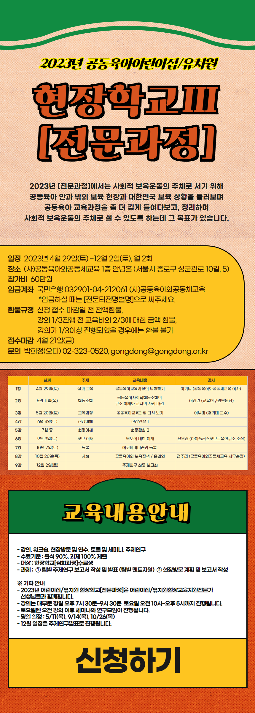 [공동육아교육연구원] 2023 공동육아어린이집/유치원 현장학교 전문과정 안내