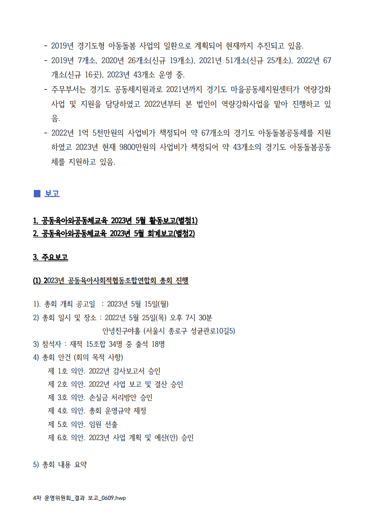 6월 운영위원회 결과 보고 드립니다. (5월 활동 보고, 회계 보고, 거점센터 추경예산안 공지 포함)
