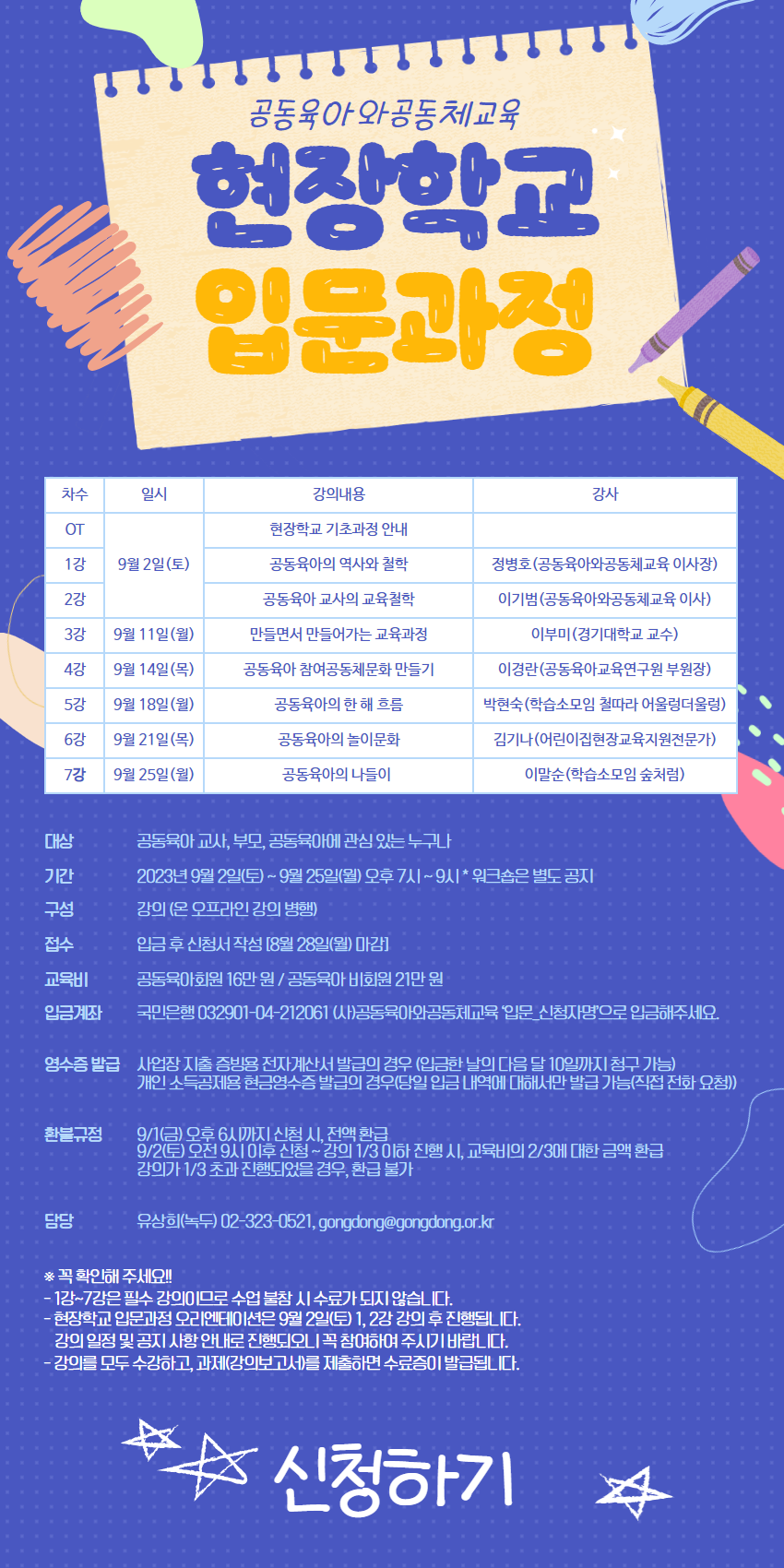 [공동육아교육연구원] 2023 공동육아어린이집/유치원 현장학교 입문과정 안내