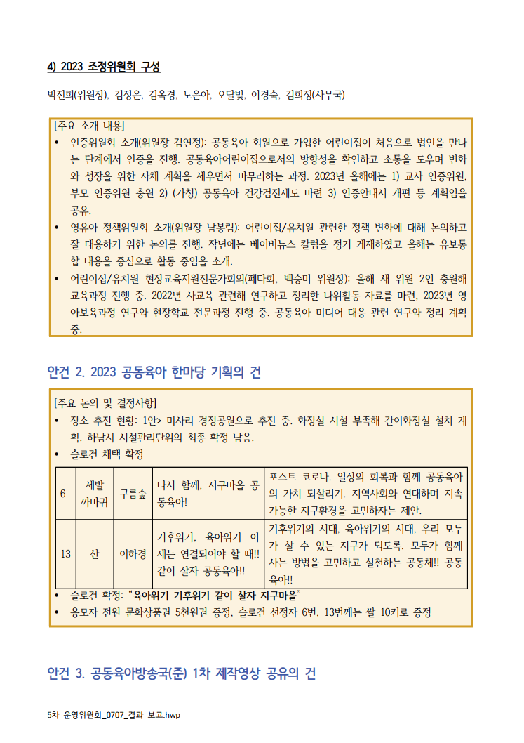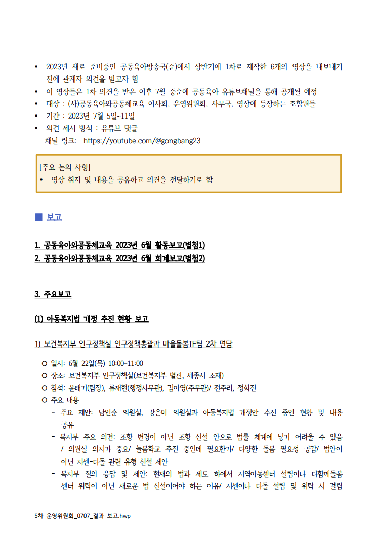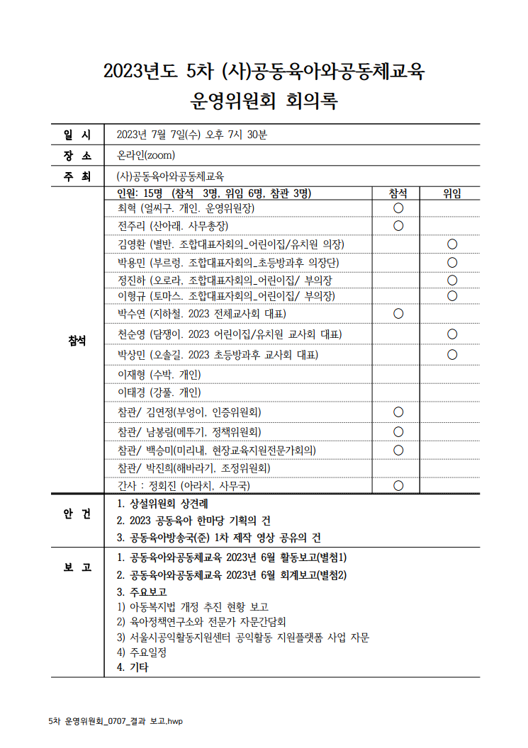 7월 5차 운영위원회 결과 보고 드립니다. (6월 활동 보고 및 회계 보고 포함)