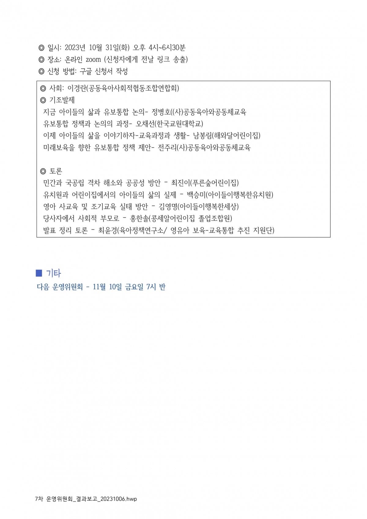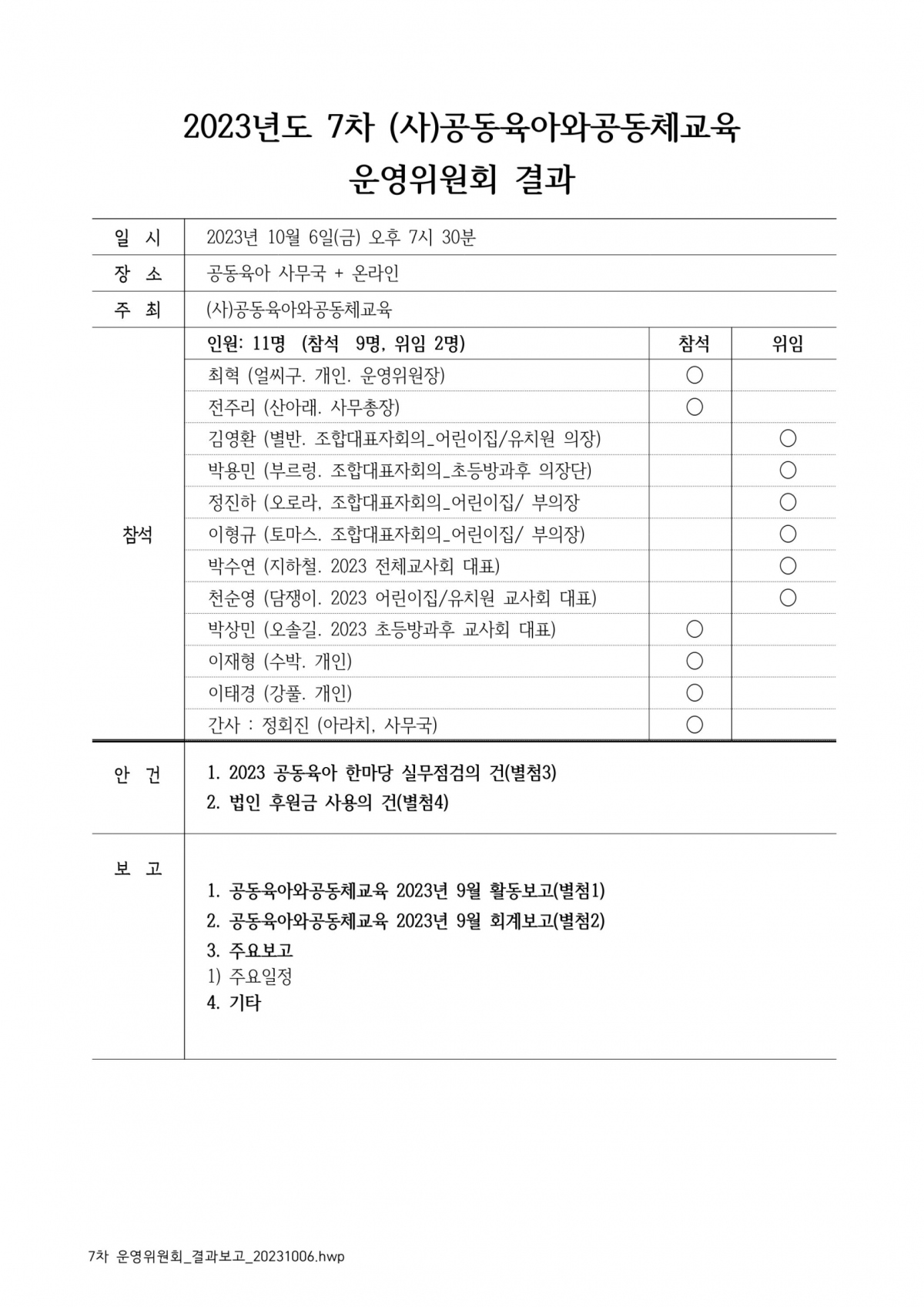 10월 운영위원회 결과 보고 드립니다. (9월 활동 보고 및 결산 보고 포함)