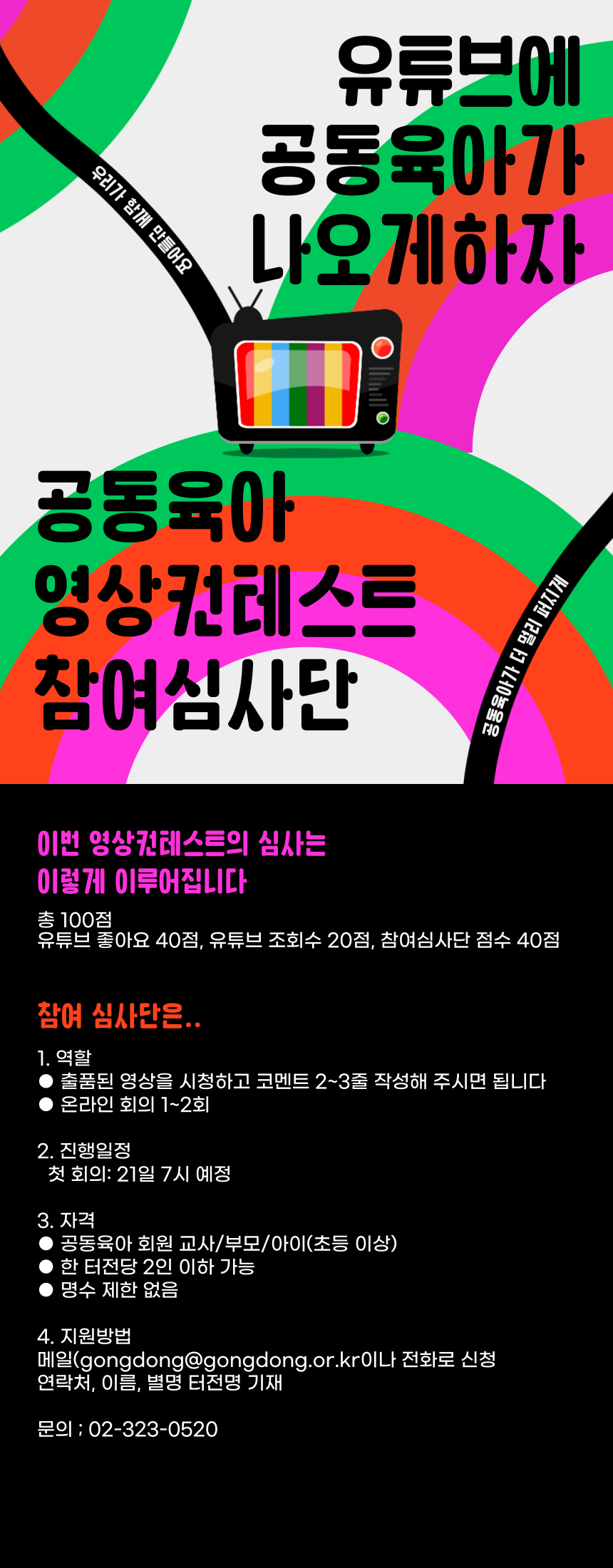 [공동육아 영상 콘테스트] 참여심사단을 모집합니다 페이지 정보 작성자 운영자 작성일23-11-09 10:48 조회1,056회 본문 댓글목록 등록된 댓글이 없습니다. 이전글 다음글 목록