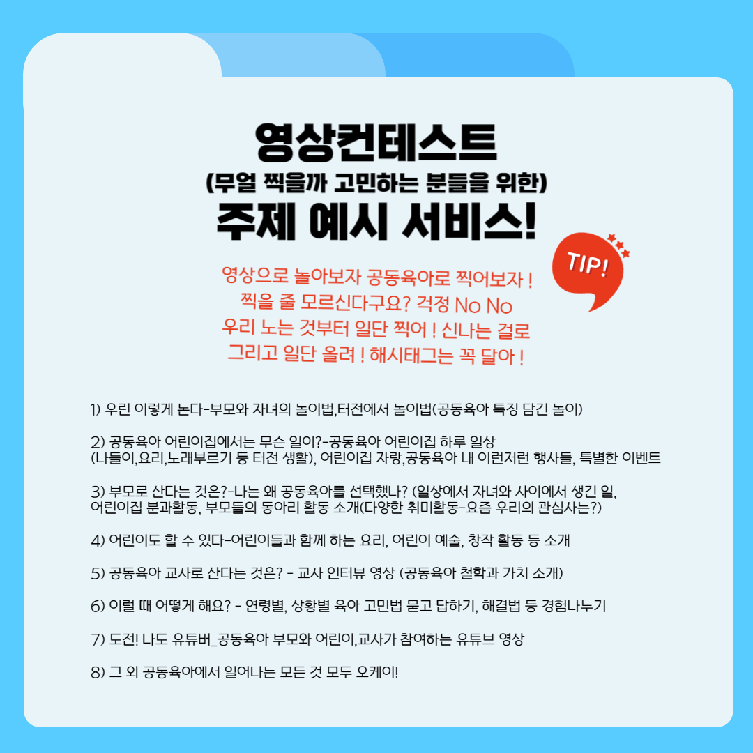 [공동육아 영상 콘테스트] 출품 독려: 주제 예시 서비스