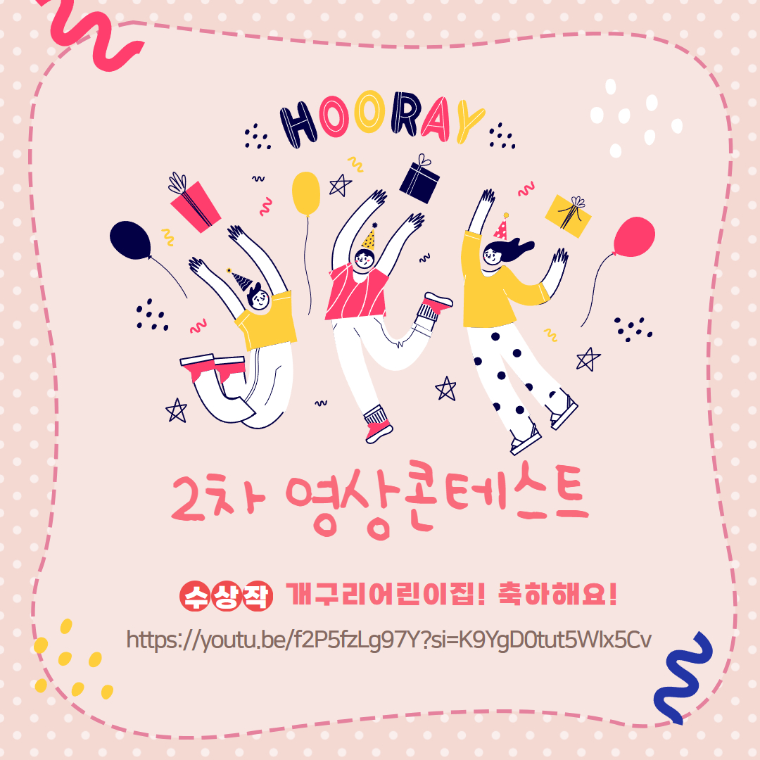 [공동육아 영상콘테스트] 2차 선정작 발표 페이지 정보 작성자 운영자 작성일23-12-29 16:08 조회923회 본문 2차 공동육아 영상 콘테스트에 출품하셨던 모든 참가자들께 감사의 인사를 드립니다. https://www.youtube.com/watch?v=f2P5fzLg97Y 댓글목록 등록된 댓글이 없습니다. 이전글 다음글 목록