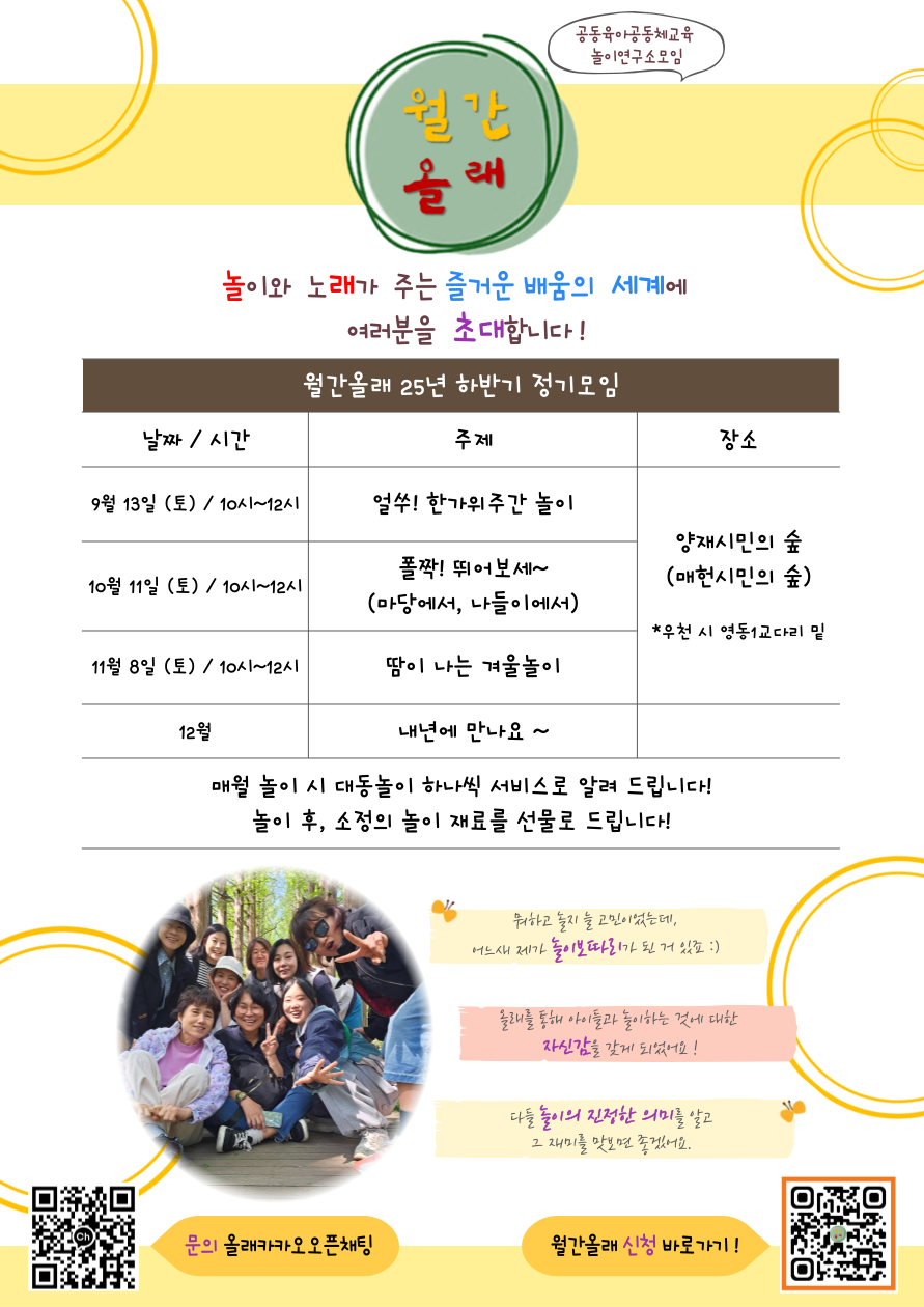 "월간 올래" _<학습소모임> 놀이와 노래가 주는 즐거운 배움의 세계에 여러분을 초대합니다! 페이지 정보 작성자 운영자 작성일25-08-25 14:08 조회423회 본문 댓글목록 등록된 댓글이 없습니다. 이전글 다음글 목록
