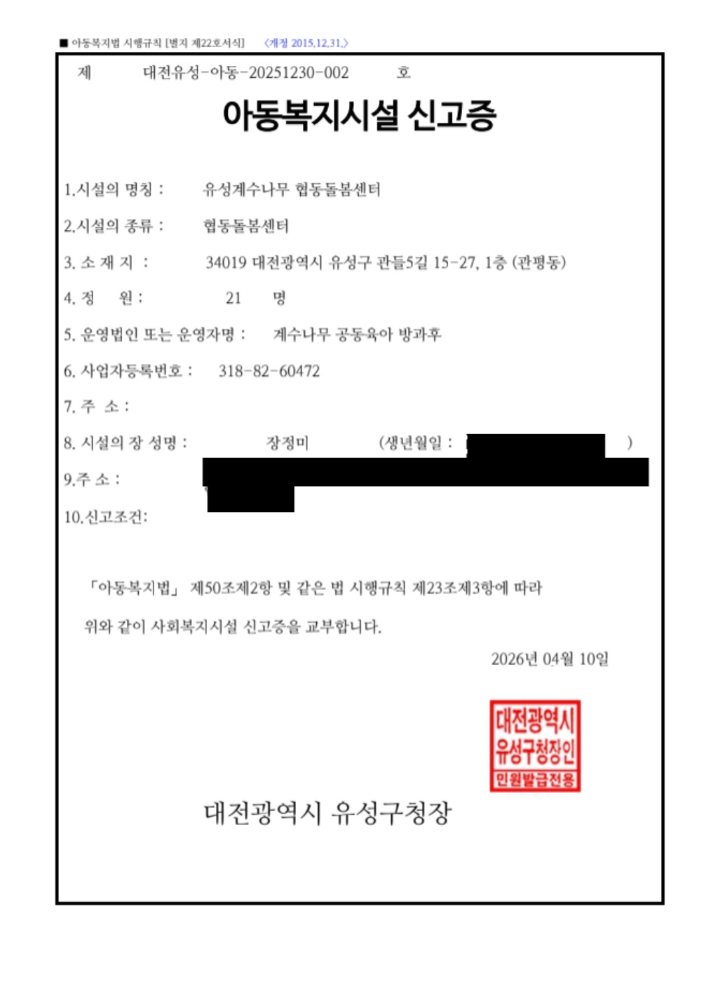 8호 협동돌봄센터: 유성계수나무 협동돌봄센터 (설립신고일: 2026년 4월 10일)