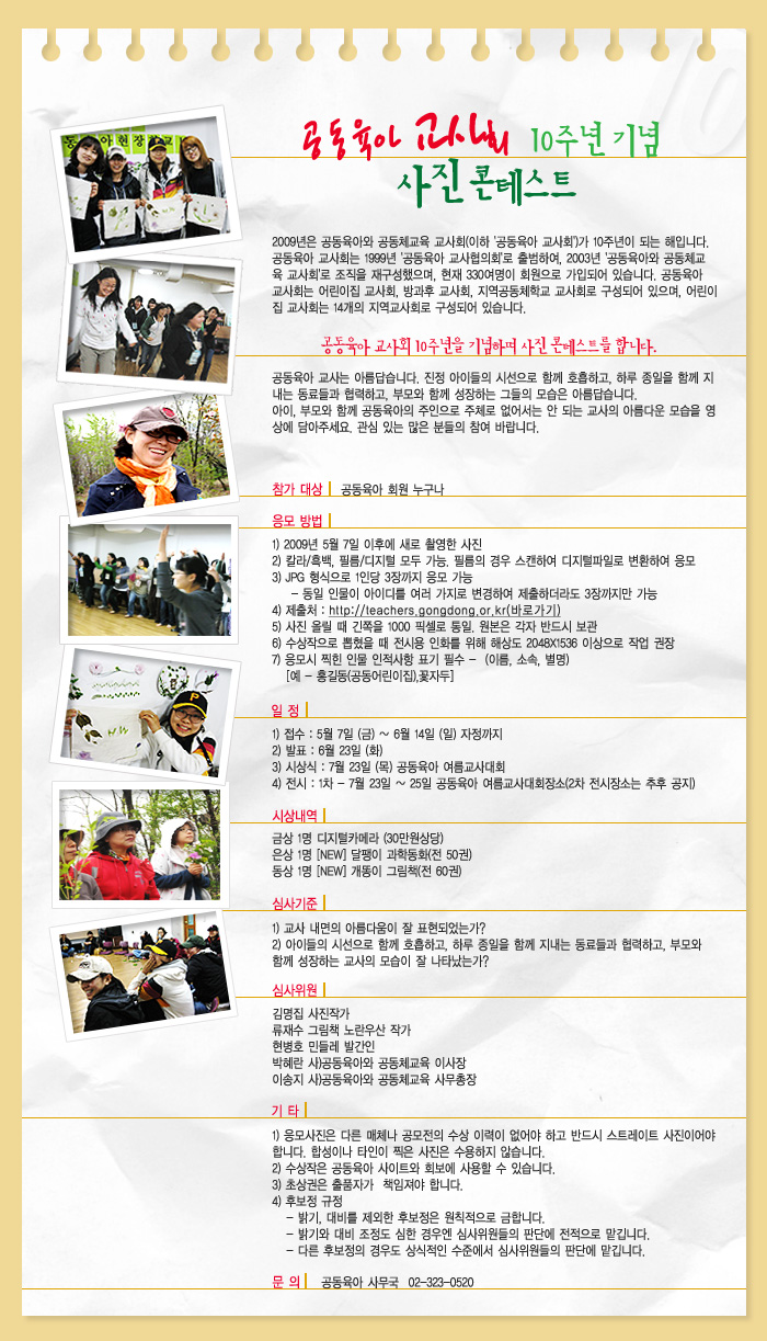 [사진콘테스트] 공동육아 교사회10주년기념 페이지 정보 작성자 admin 작성일09-05-07 17:46 조회2,179회 본문 댓글목록 admin님의 댓글 admin 작성일 09-05-07 17:48 이미지를 클릭하시면 크게 보실 수 있습니다. 이미지를 클릭하시면 크게 보실 수 있습니다. 허니비님의 댓글 허니비 작성일 09-05-11 20:32 ㅠㅜ 2008년도 여름교사대회 사진은 안되는군요... 아쉽당~ ㅠㅜ 2008년도 여름교사대회 사진은 안되는군요... 아쉽당~ 이전글 다음글 목록 수정 삭제