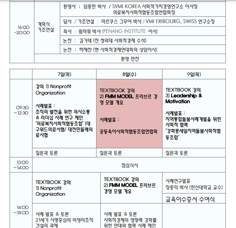 스위스 프리브루 경영모델 전문가인 마르쿠스 그무어 박사와 함께 돌봄조직들이 모여 진행한 것으로 작년에 이어 2회차 워크숍입니다.