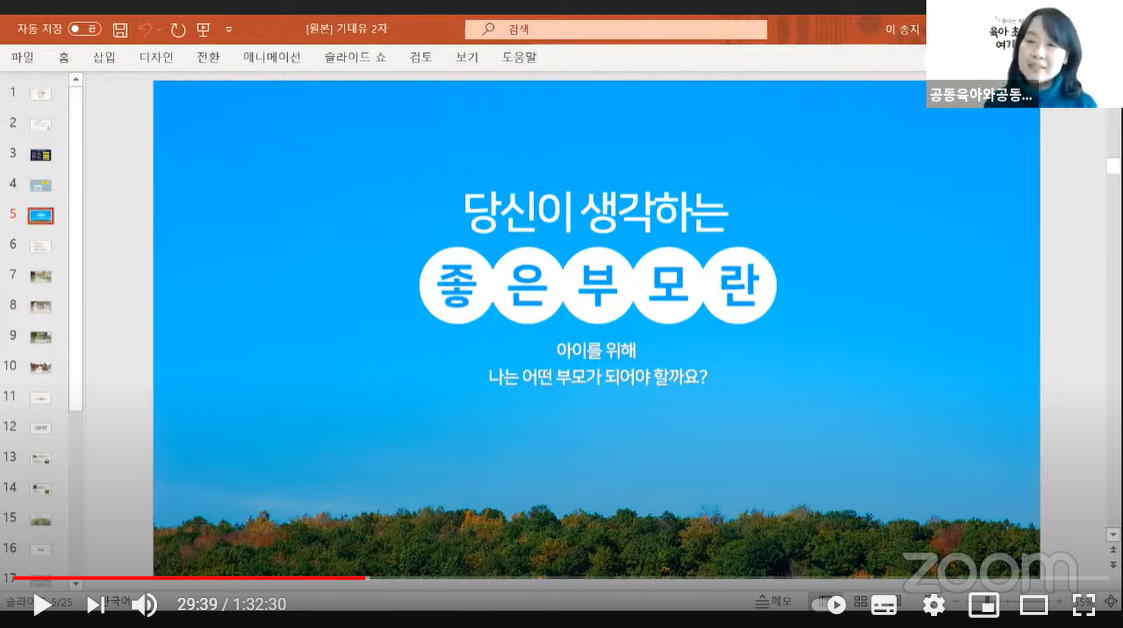 11:00 ~11:40 | “육아, '아이를 기른다'는 것은 무엇일까요? 어떤 부모가 되어야할까요?” - 아동중심, 관계중심, 생태중심, 놀이중심 등 어떤 관점과 태도로 육아를 해야할지 쉬운 언어로 이야기 나눠요. |