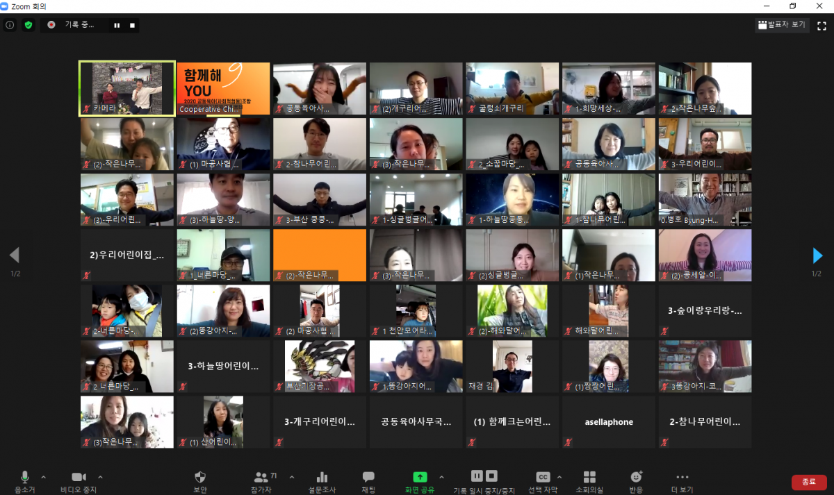 이제 온종일 온라인 행사쯤은 가뿐히 해내는 공동육아 구성원분들을 보며 그 적응력이 놀라웠습니다.