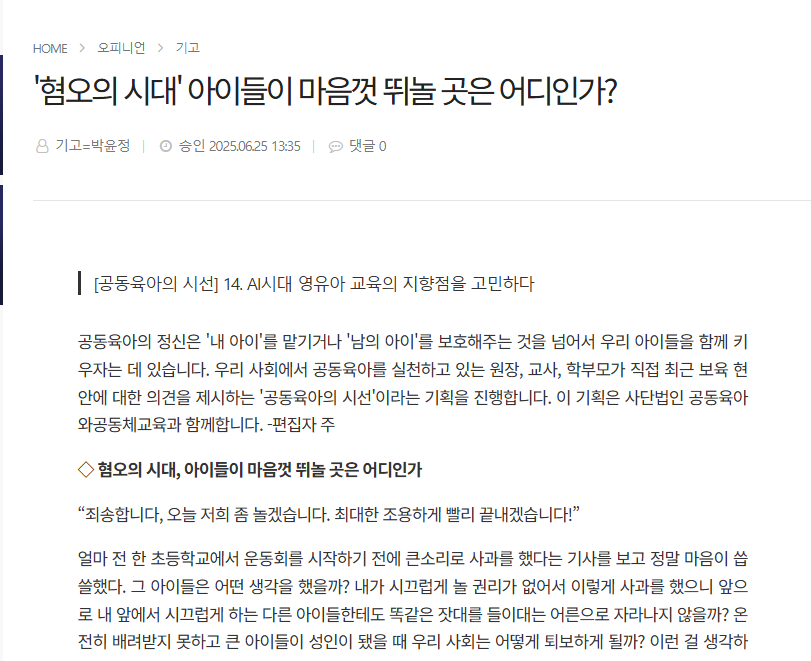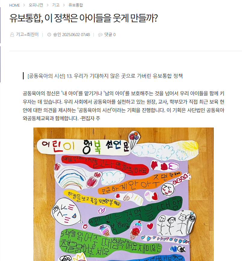 2025년 상반기 공동육아 정책위원회에서 베이비뉴스에 기고한 글 2개를 소개합니다.