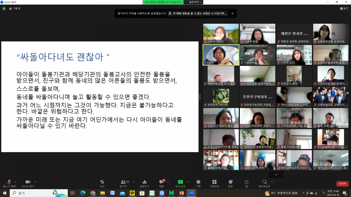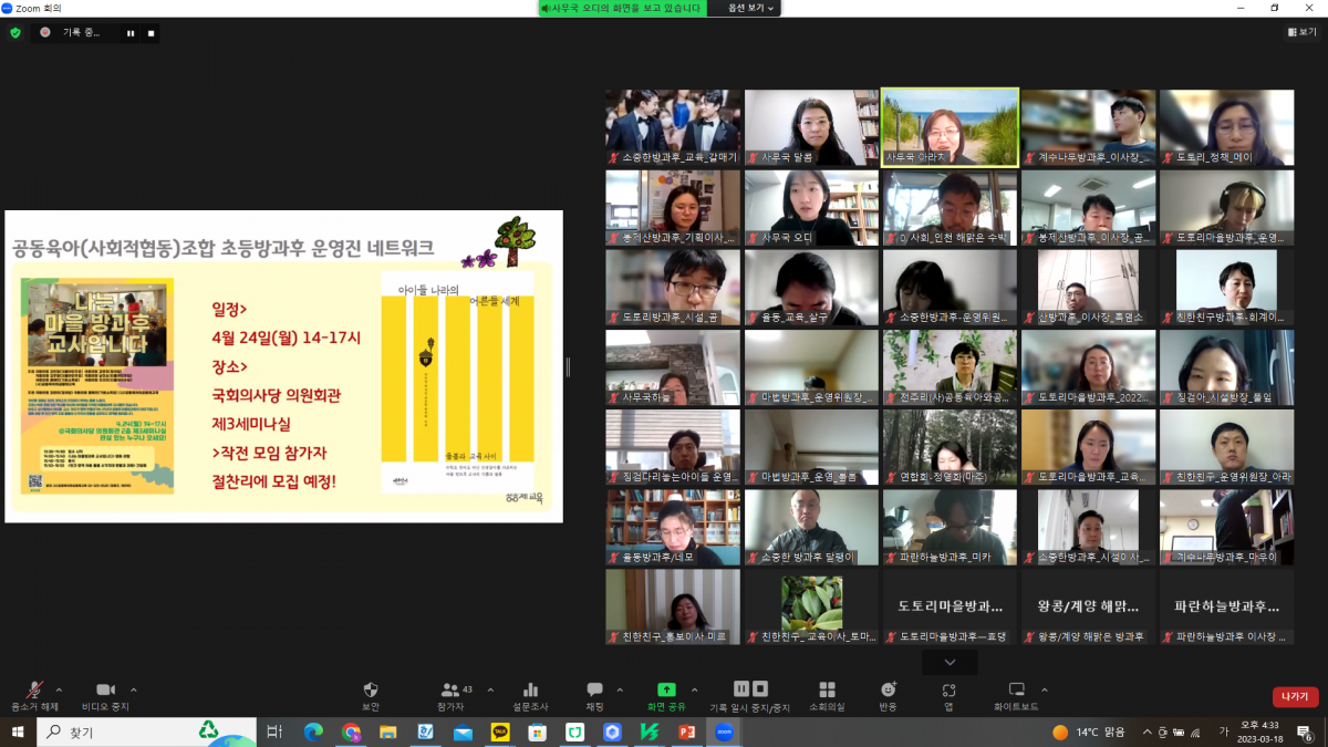 2023년 3월 18일(토) 공동육아초등방과후 운영진 네트워크가 열렸습니다!
