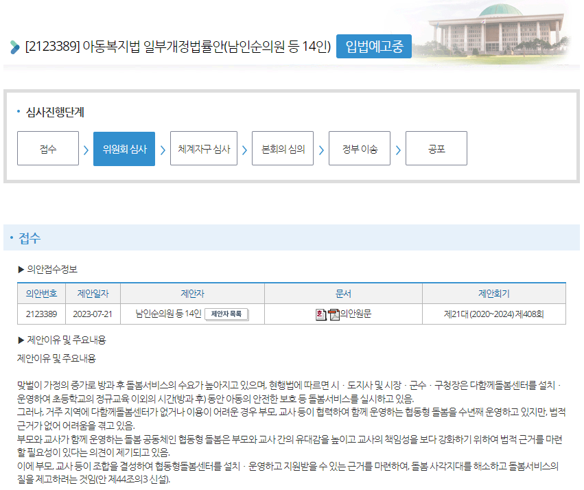 드디어 <아동복지법 일부개정법률안>안이 발의되었습니다.