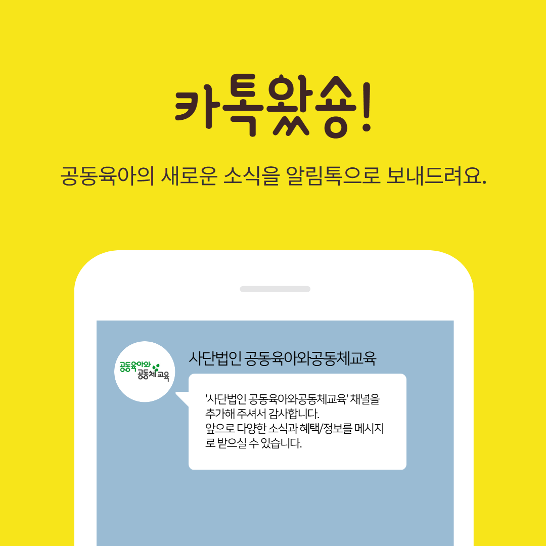 (사)공동육아와공동체교육 카카오톡 채널을 오픈 했습니다! 페이지 정보 작성자 운영자 작성일25-08-14 11:18 조회203회 댓글0건 본문 채널 추가 바로가기(클릭) 댓글목록 등록된 댓글이 없습니다. 목록