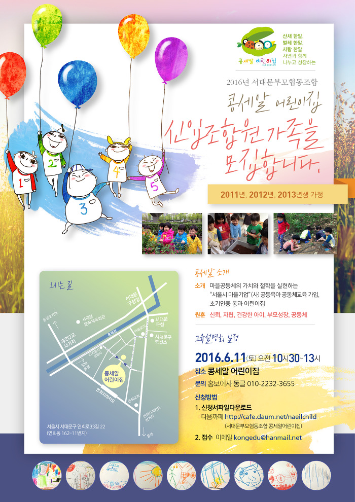 모집중 | 서대문구 콩세알 어린이집 신입 모집 교육설명회 안내 [2013~11년생] 2016년 6월 11일(토) 10시반