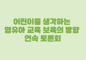 유보통합- 어린이집과 유치원의 지원격차 통합, 교육내용 통합, 인력 통합의 과정에 대한 방향을 함께 고민하는 자리가 되었으면 좋겠습니다.