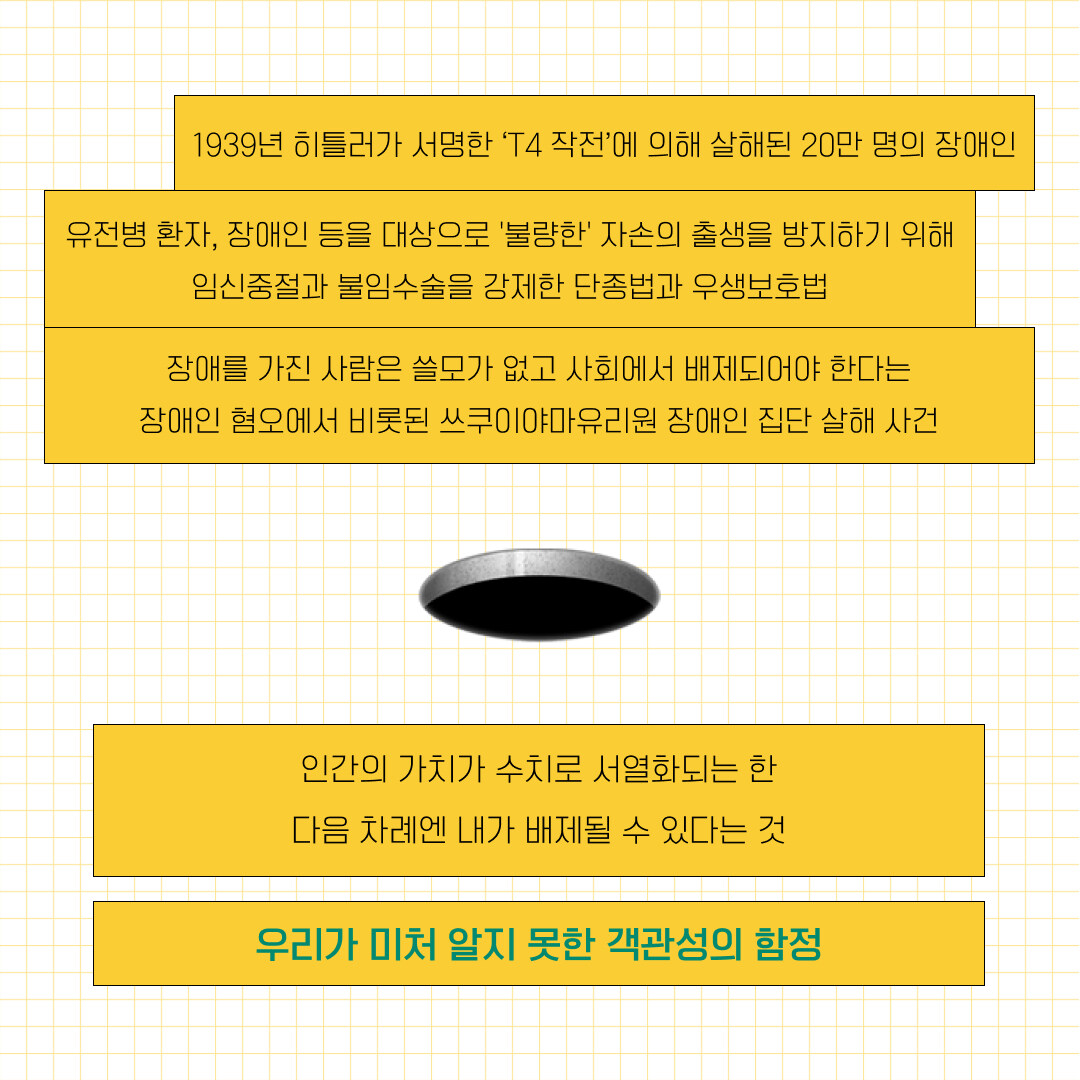 서열화, 수치화가 당연시되고 ‘숫자가 곧 진리’로 여겨지는 지금, ‘객관성’에 의거한 사고가 사회를 지배하게 된 배경과 원인을 살펴보고 그로 인해 얻은 것과 잃은 것을 이야기한다. 책 앞부분에서는 과학의 발전과 함께 중요시된 ‘객관성’이 서열화와 경쟁을 초래한 배경을 살펴보고, 뒷부분에서는 이러한 경향에서 벗어나 “아무도 외면당하지 않는 세계”(173쪽)를 만드는 구체적인 방법을 제안한다.