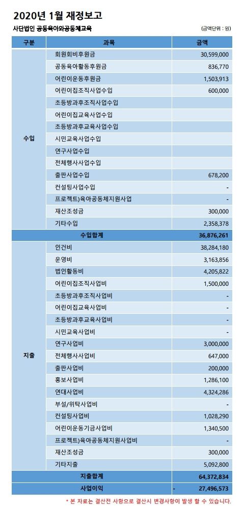 2019년 법인회계 재정보고(어린이운동기금 포함)