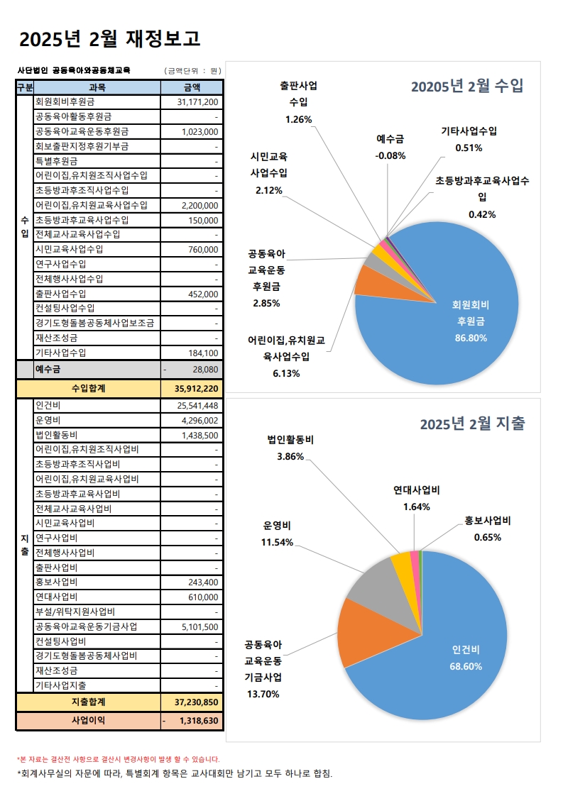 2024년 공동육아와공동체교육 연간 기부금 모금액 및 활용실적 명세서