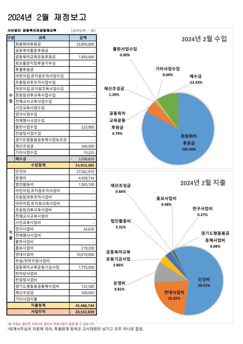 2023년 공동육아와공동체교육 연간 기부금 모금액 및 활용실적 명세서