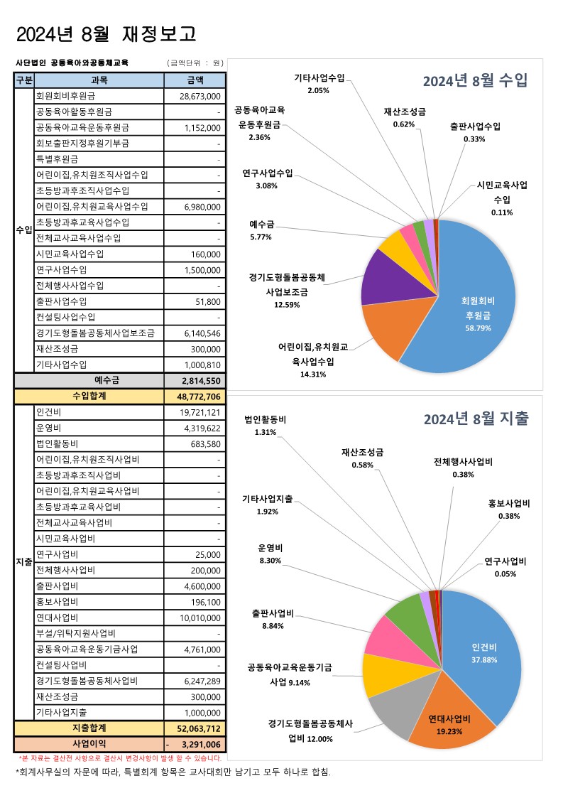 2023년 공동육아와공동체교육 연간 기부금 모금액 및 활용실적 명세서