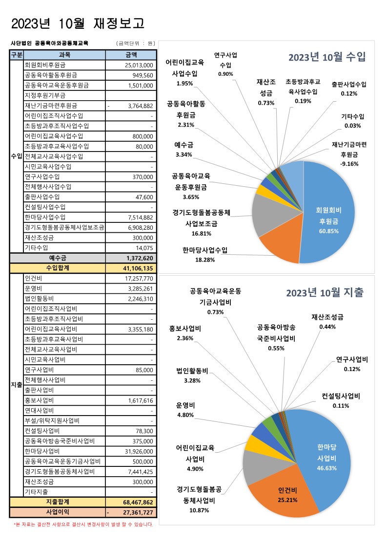 2023년 10월 재정보고