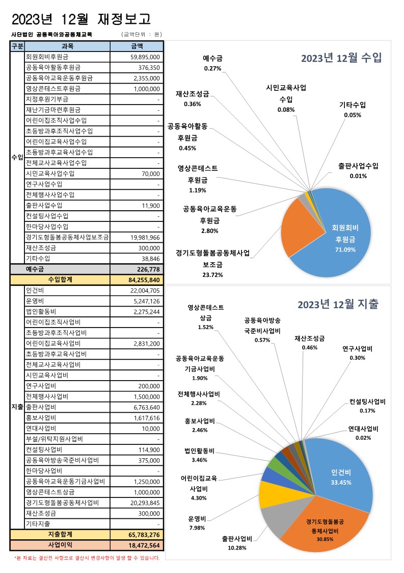 2023년 12월 재정보고