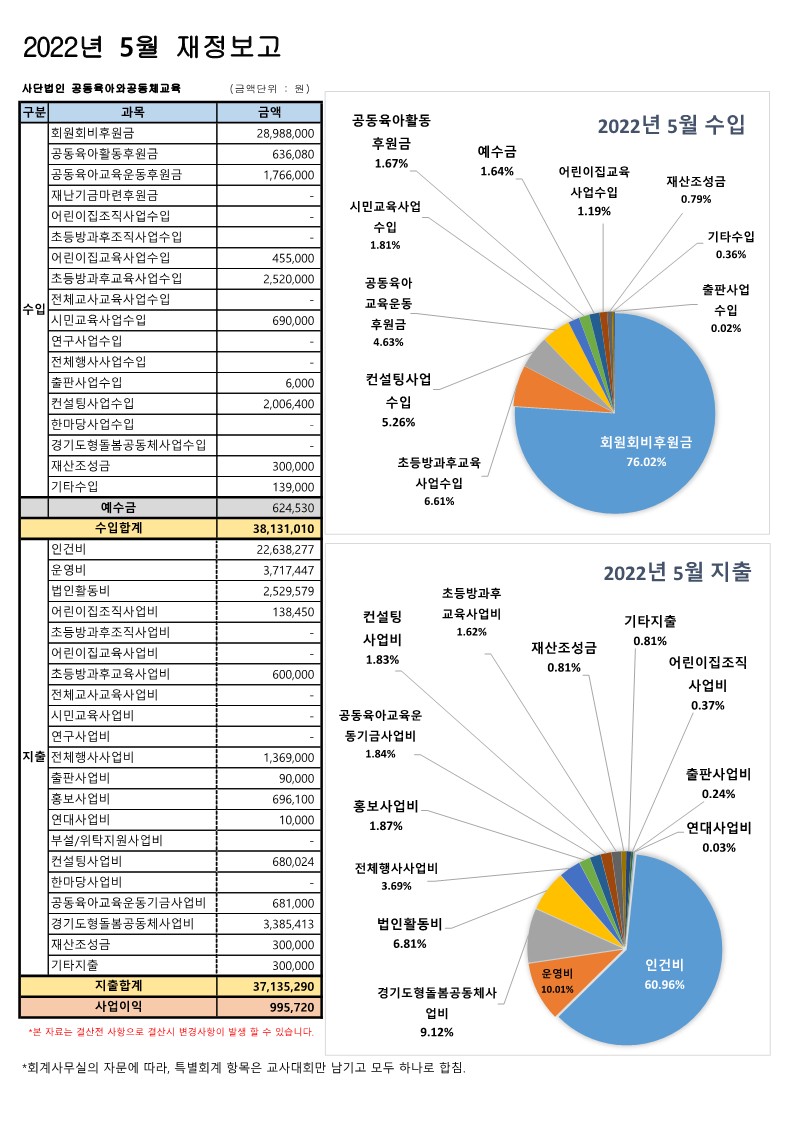 2022년 5월 재정보고