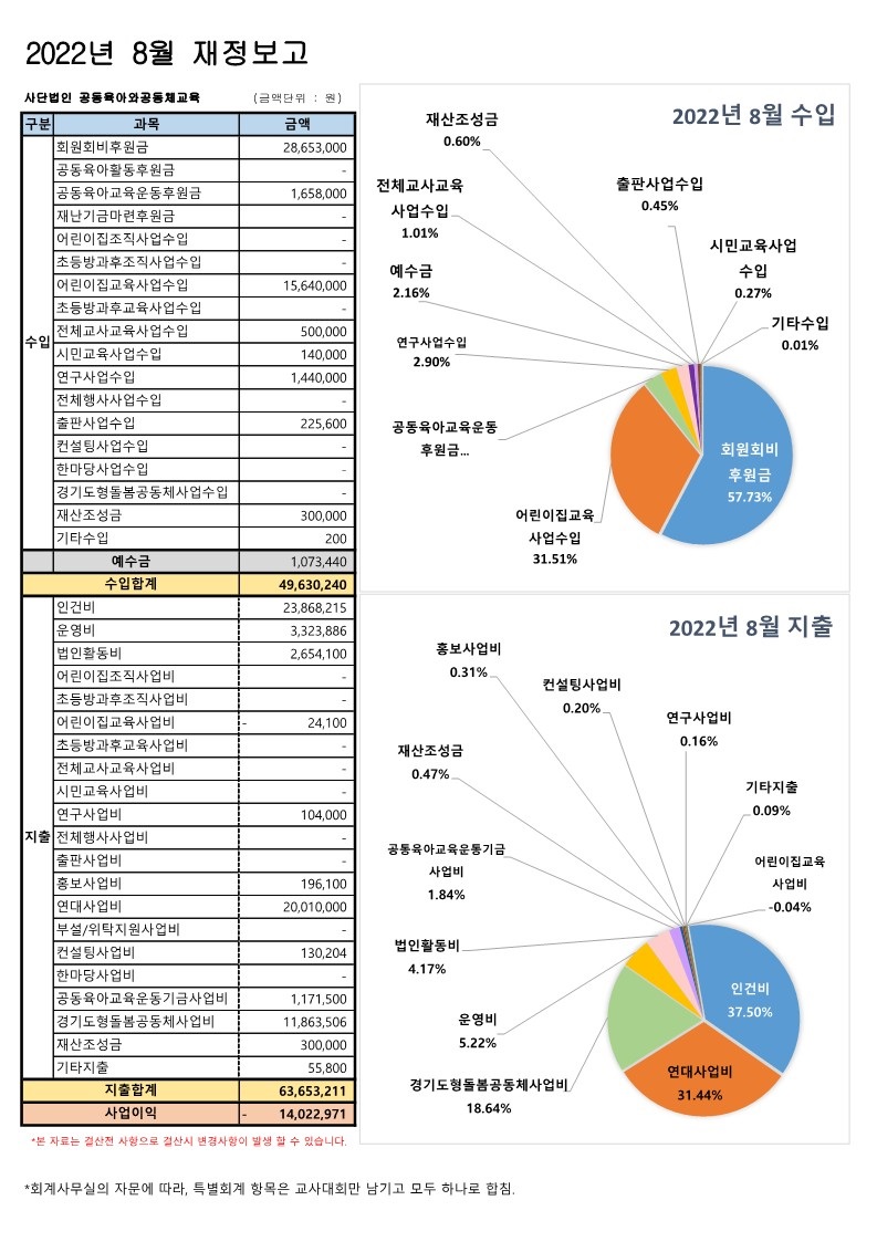 2022년 8월 재정보고