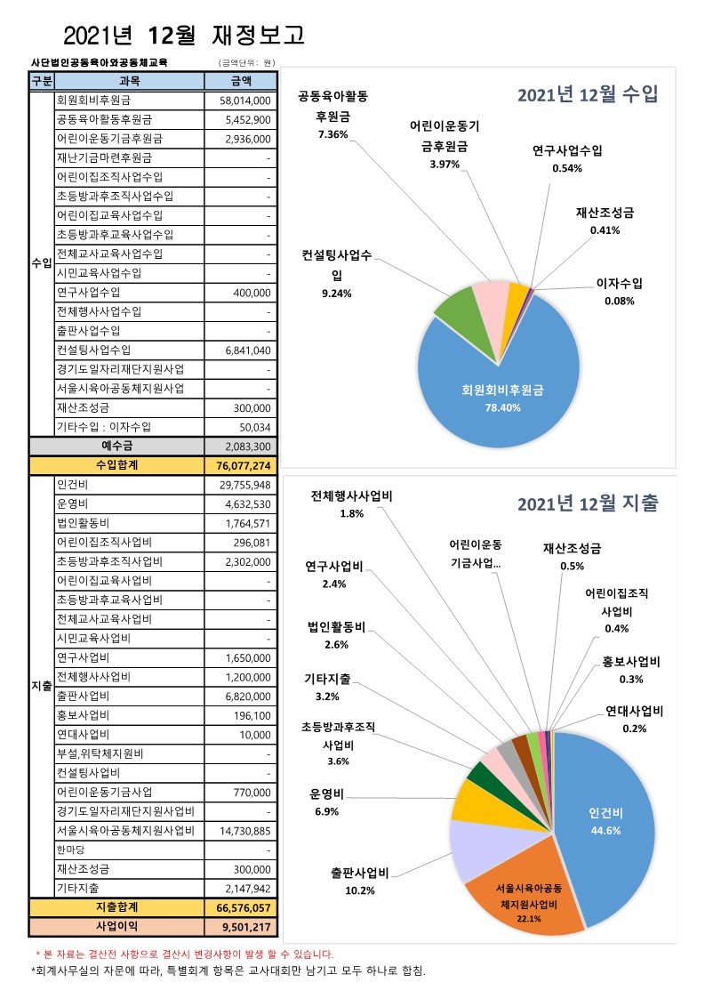 2021년 12월 재정보고