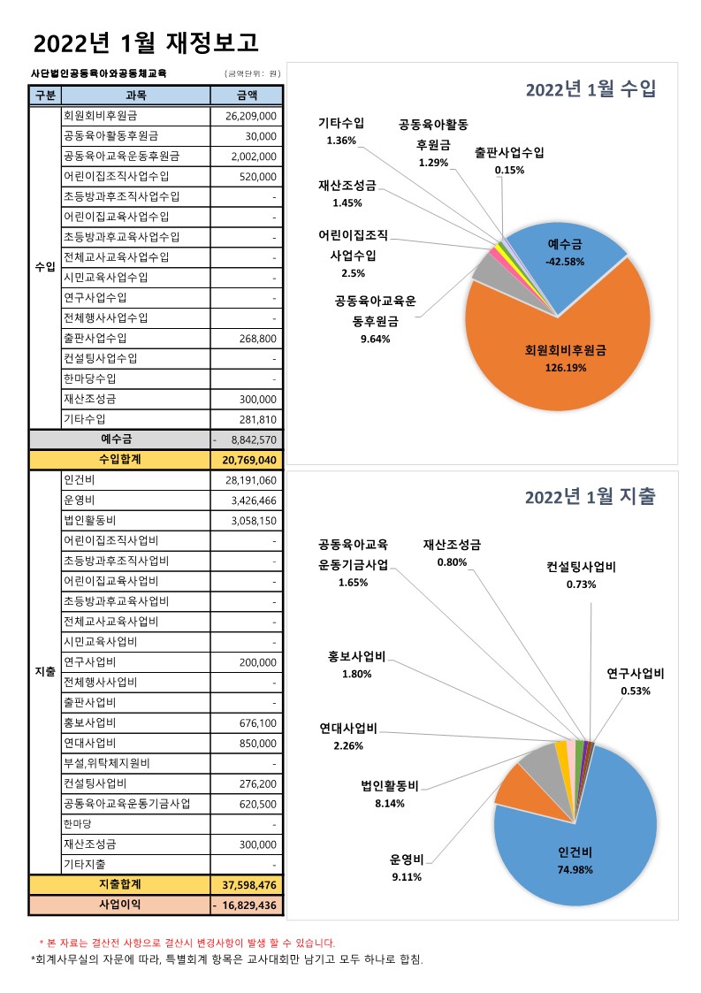 2022년 1월 재정보고