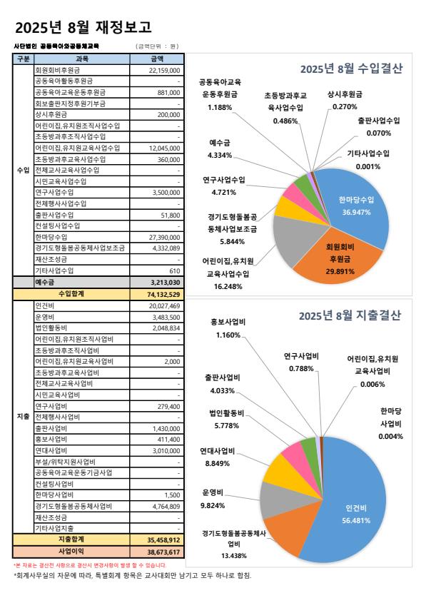 2025년 8월 재정보고